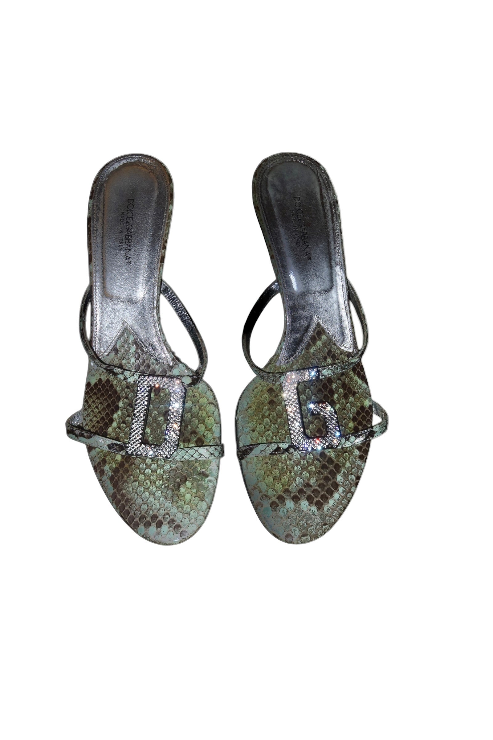 Dolce & Gabbana blue/green snakeskin heels with DG rhinestones logo (39)
