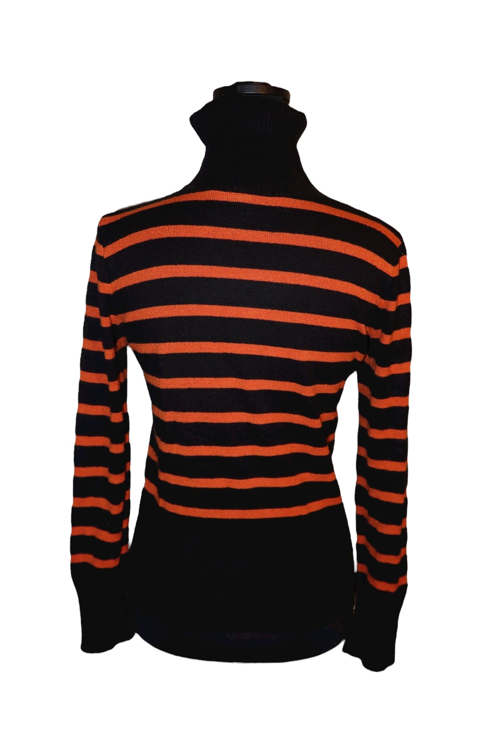 Just Cavalli black/orange striped turtleneck sweater with rhinestone logo (S)