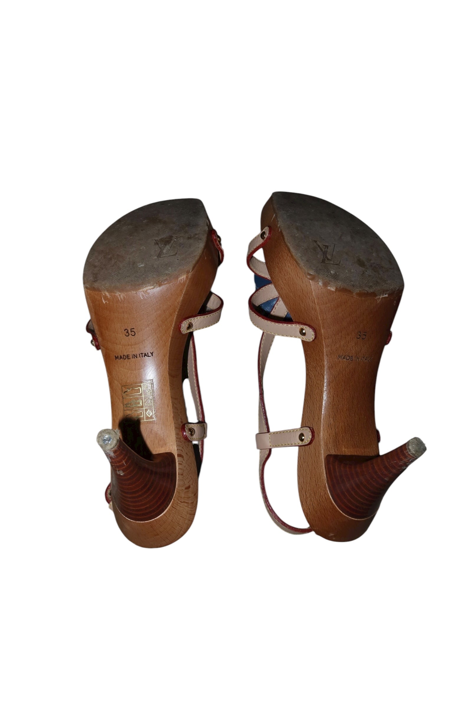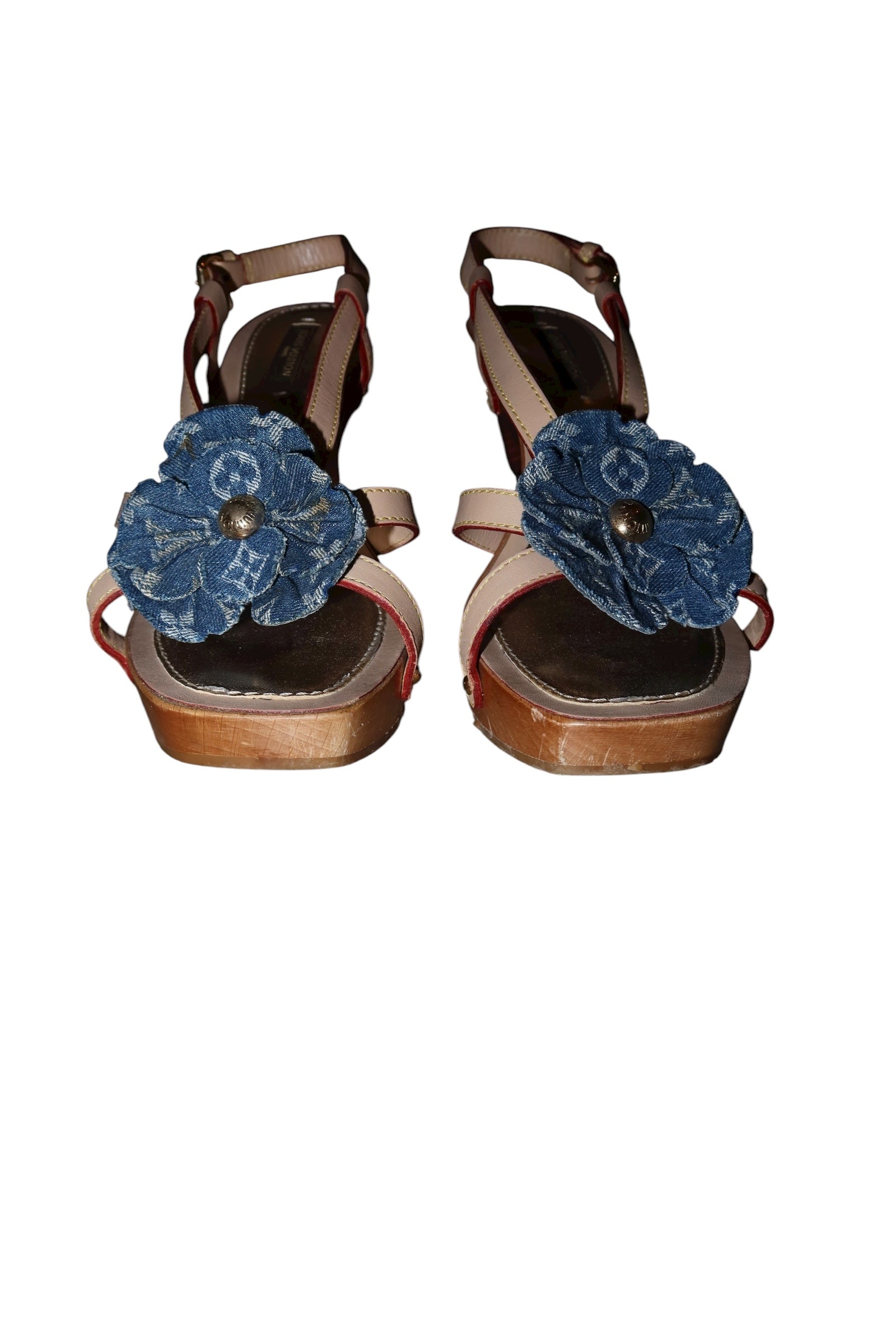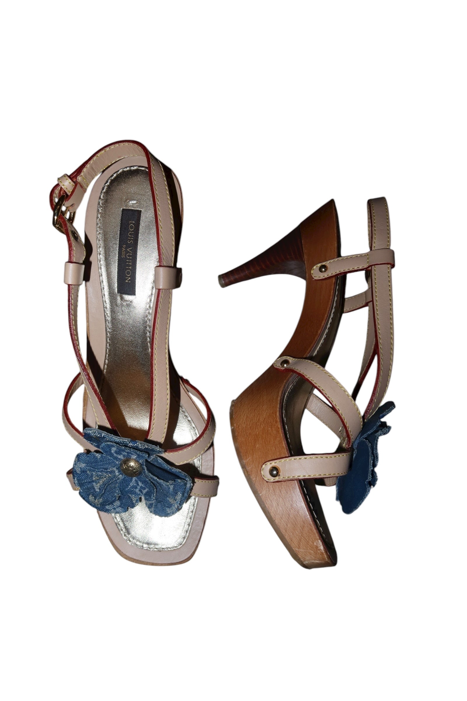Louis Vuitton beige and blue denim flower logo heels (35)