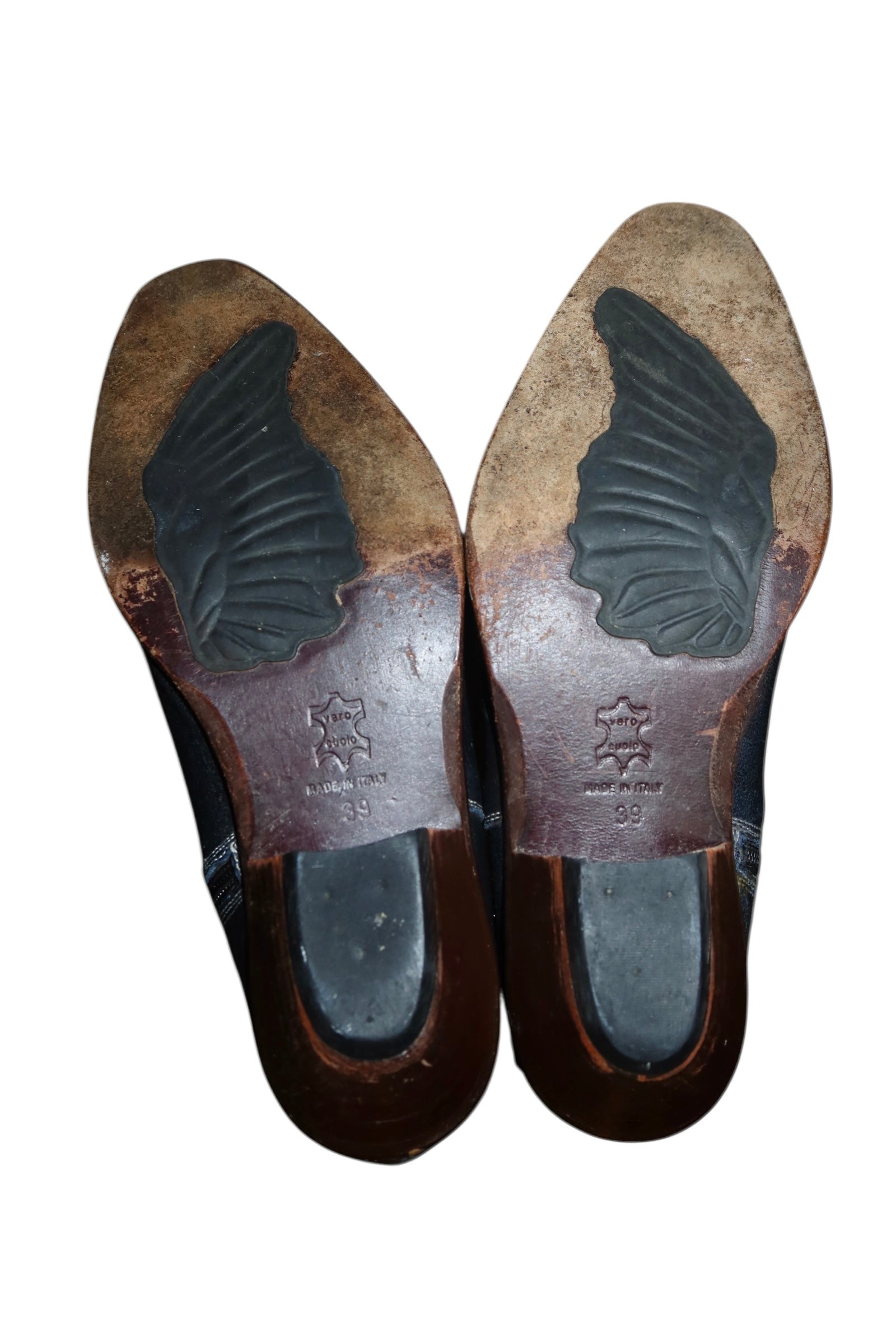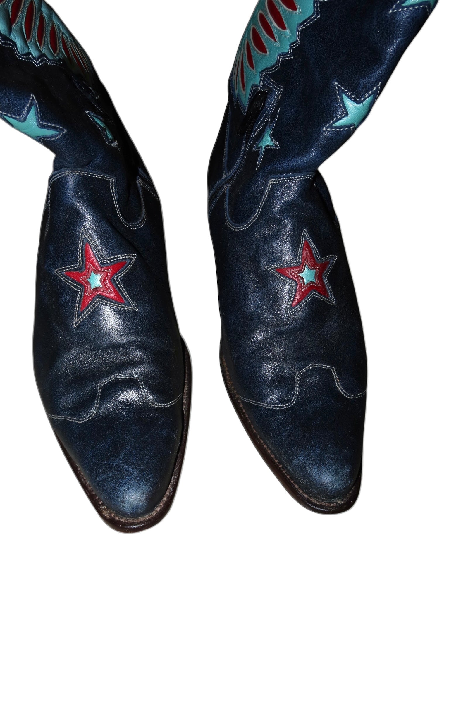 Roberto Cavalli midnight blue leather boots with wing details (39)